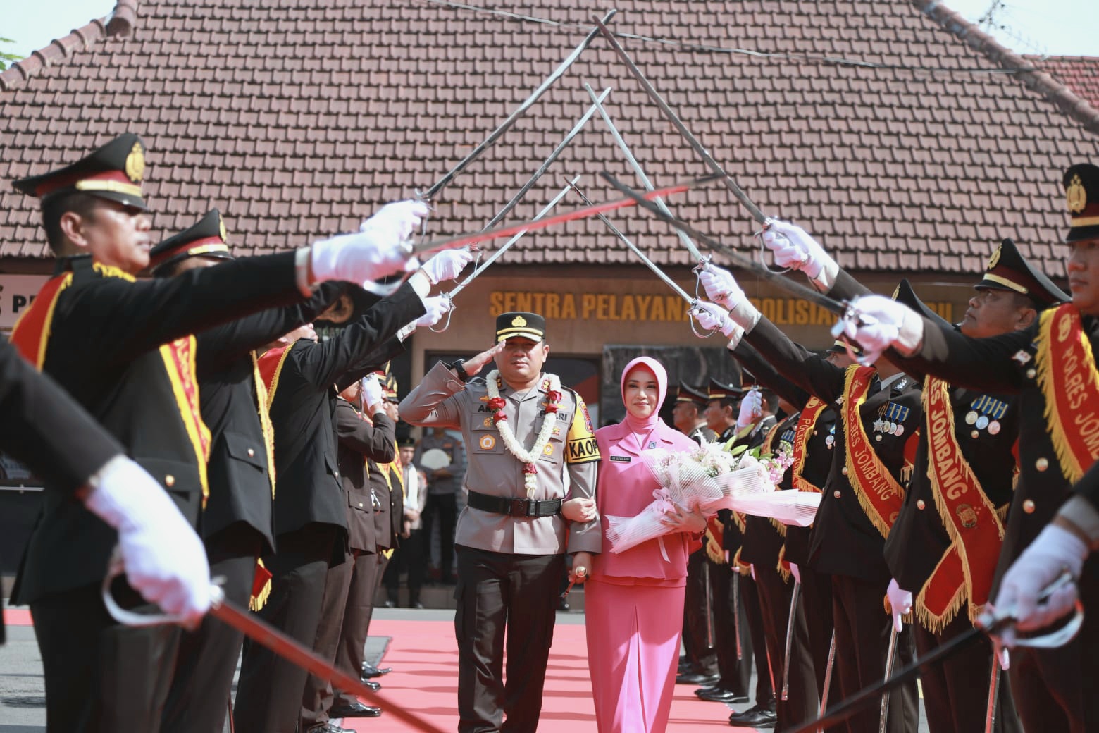Tradisi ini menjadi simbol penghormatan sekaligus penyambutan hangat dari jajaran Polres Jombang kepada pemimpin baru mereka.