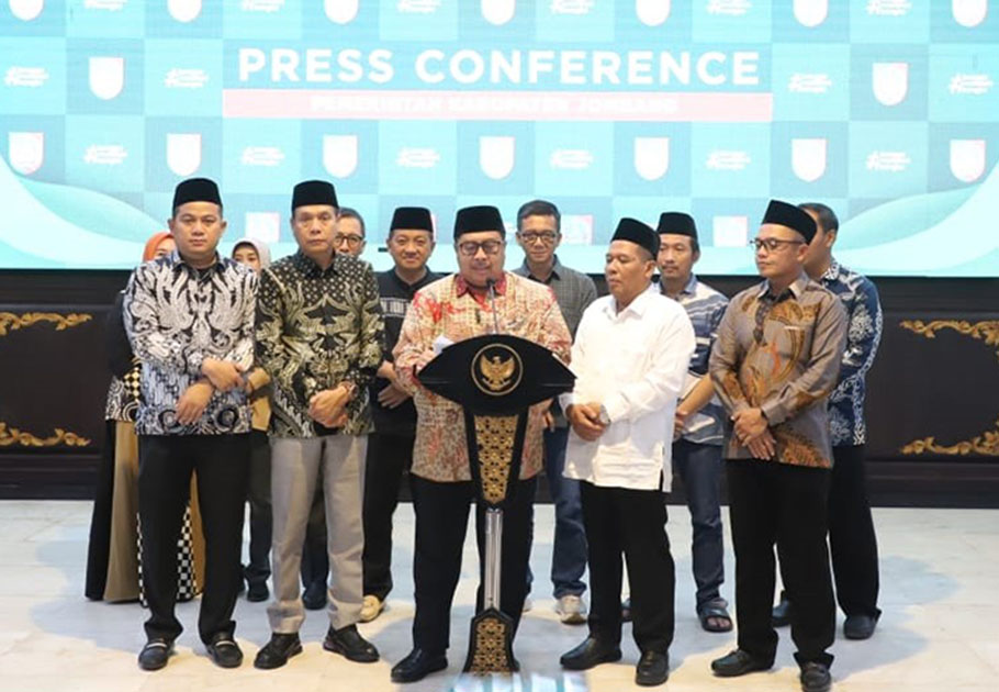JOMBANG, beritadesa.com-Bupati Jombang Warsubi, didampingi Wakil Bupati Jombang Salmanudin, Sekdakab Jombang Agus Purnomo, Forkopimda Jombang, dan segenap kepala OPD terkait lingkup Pemkab Jombang menyampaikan tanggapan terkait kondisi jalan di wilayah Desa Jipurapah, Kecamatan Plandaan dalam konferensi pers di Pendopo Pemkab Jombang, Minggu (27/04/2025) malam.