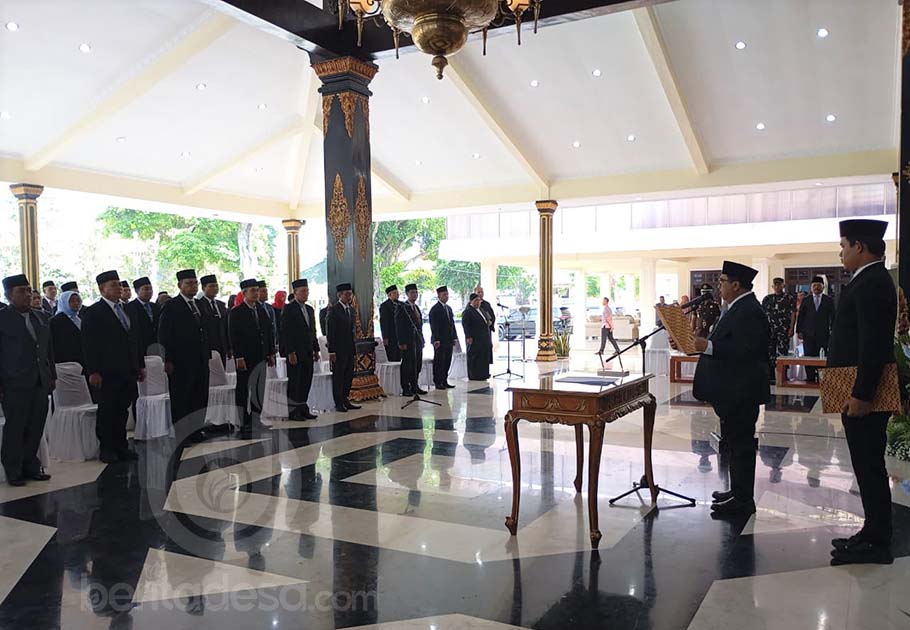 JOMBANG, beritadesa.com-Bupati Jombang, Warsubi, resmi melantik dan mengambil sumpah/janji 66 Pejabat Manajerial dan Kepala Puskesmas di lingkungan Pemerintah Kabupaten Jombang. Di Pendopo Kabupaten Jombang, pada Jumat, (7/11/2025).