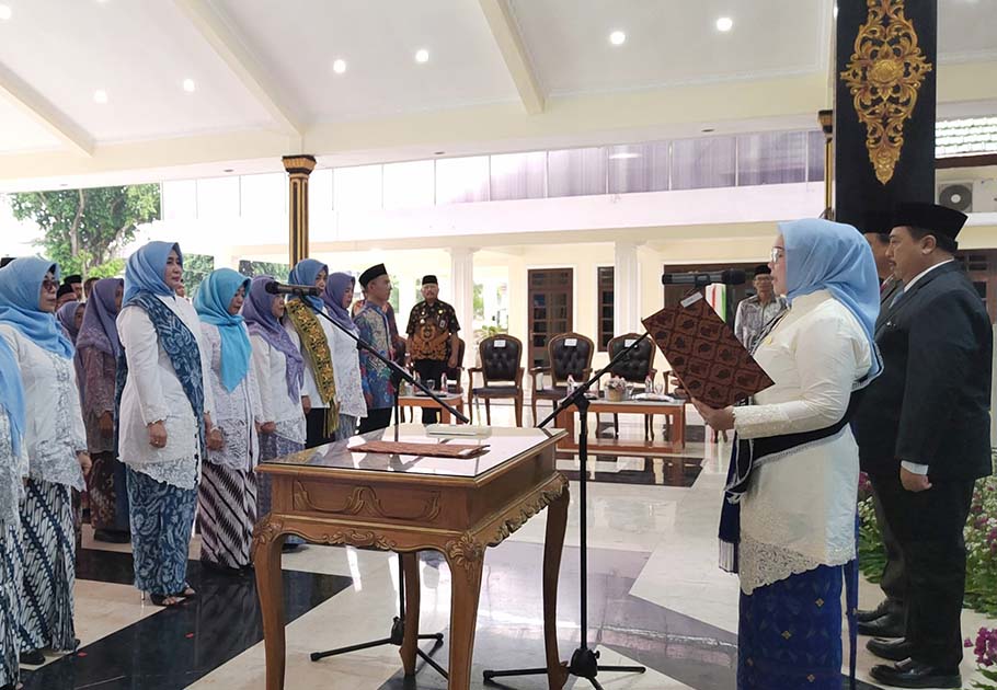 Acara pengukuhan berjalan khidmat, diawali dengan pembacaan Surat Keputusan Bupati, dilanjutkan dengan prosesi pelantikan dan pengukuhan, penandatanganan berita acara, serta penyematan pin dan selempang secara simbolis.