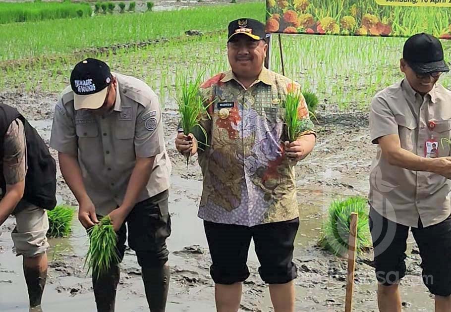Gerakan tanam padi ini dilaksanakan di Dusun Kalimati Desa Kendalsari, Kecamatan Sumobito, pada hari ini, Kamis (10/4/2025) pagi, dipimpin langsung oleh Bupati Jombang Warsubi.