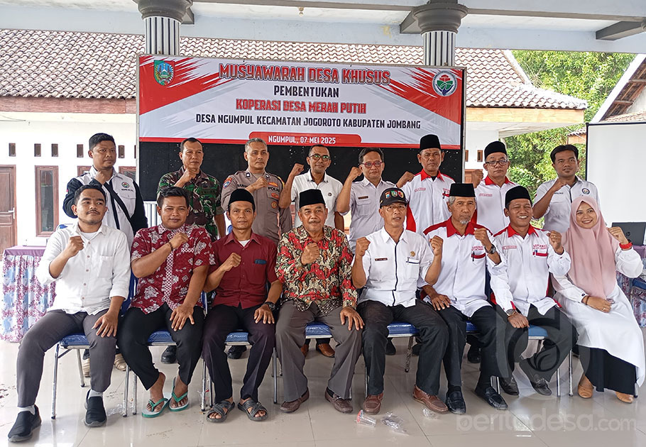 Musyawarah desa khusus ini dihadiri oleh perwakilan DPMD Kabupaten Jombang perwakilan Dinas Koperasi dan UMKM Jombang, Camat Jogoroto, Kepala Desa Ngumpul, berbagai elemen masyarakat, termasuk tokoh masyarakat, BPD, perangkat desa, dan perwakilan kelompok usaha warga. Dengan terbentuknya Koperasi Desa Merah Putih, Desa Ngumpul menargetkan peningkatan ekonomi desa berbasis gotong royong dan pemberdayaan masyarakat. (*)