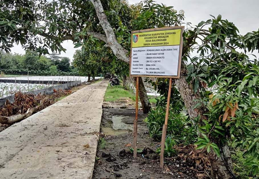 Jalan yang dibangun tersebut memiliki panjang 180 Meter dan lebar 2 Meter, total biaya sebesar Rp. 100 juta yang bersumber dari Anggaran Dana Desa (DD) tahun 2024. Pembangunan berlokasi, di kawasan lahan pertanian warga di Dusun Kedungboto, Desa Balongsari, Jombang.