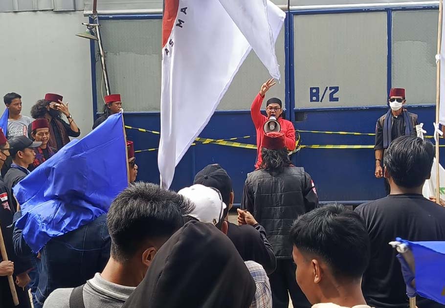 TANGERANG, beritadesa.com-Sejumlah massa yang tergabung dalam Aliansi Masyarakat Madani Tangerang Libas Mafia (Almamater Lima) menggeruduk sebuah gudang yang diduga menjadi tempat produksi atau penyimpanan oli palsu di Kompleks Pergudangan Kavling DPR, Kecamatan Cipondoh, Kota Tangerang.