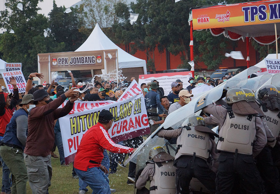 Eskalasi mulai meningkat pada tahap pemungutan dan rekapitulasi suara. Skenario aksi unjuk rasa pun digelar dalam simulasi ini. Seolah-olah ada kelompok massa yang tak puas dengan hasil penghitungan KPU Jombang.