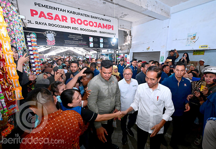 BANYUWANGI, beritadesa.com-Presiden Joko Widodo mengunjungi Pasar Rogojampi, Kabupaten Banyuwangi, Provinsi Jawa Timur, pada Rabu (27/12/2023).