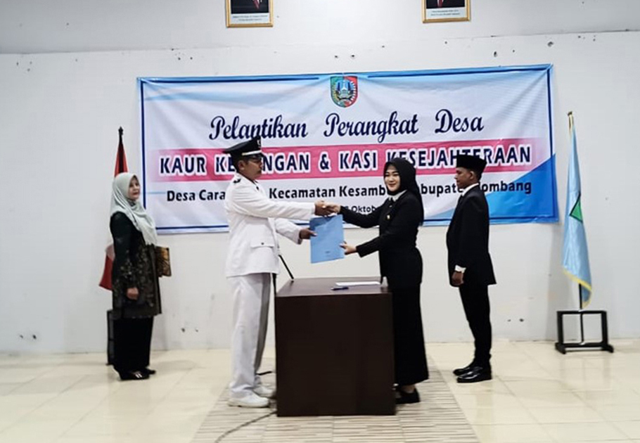 Sementara itu, Camat Kesamben, Eka Yulianto, S.STP, dalam sambutannya memberikan apresiasi kepada Pemerintah Desa Carangrejo yang telah melaksanakan seluruh tahapan penjaringan perangkat desa sesuai aturan. Ia juga menekankan pentingnya sinergi antar perangkat dalam mewujudkan tata kelola pemerintahan desa yang profesional dan berintegritas.