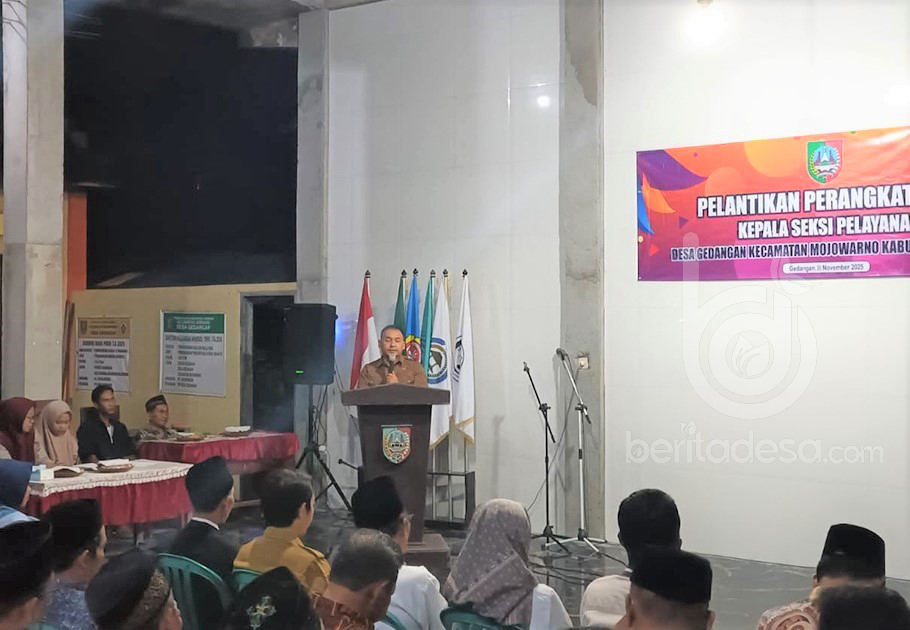 JOMBANG, beritadesa.com-Pemerintah Desa Gedangan, Kecamatan Mojowarno, Kabupaten Jombang, menggelar pelantikan dan pengambilan sumpah jabatan perangkat desa, pada Selasa malam (18/11/2025) di kantor desa setempat.