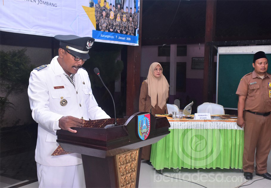 JOMBANG, beritadesa.com-Pemerintah Desa Karangmojo, Kecamatan Plandaan, Kabupaten Jombang, menggelar Pelantikan Perangkat Desa. Dilaksanakan di pendopo balai desa setempat, pada Rabu malam (7/1/2026).