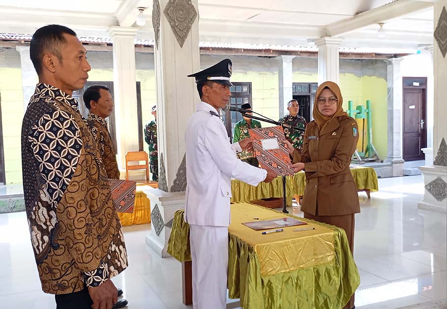 Kegiatan pelantikan perangkat desa Kauman, Kecamatan Kabuh, Kabupaten Jombang. Yang berlangsung di Pendopo kantor desa setempat, pada Kamis (20/03/25).