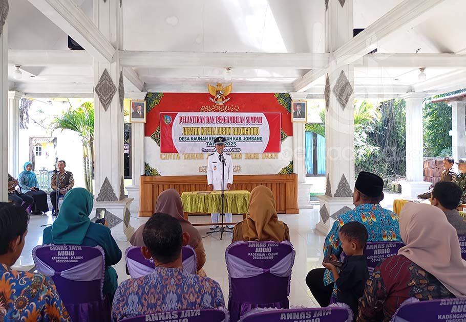 JOMBANG, beritadesa.com-Kepala Desa (Kades) Kauman, Kecamatan Kabuh, Kabupaten Jombang Riyanto, resmi melantik dan mengambil sumpah Dina Dwi Novita Sari sebagai Kepala Dusun Balongdoro Pemerintah desa Kauman. Di Pendopo kantor desa setempat, pada Kamis (20/03/25).