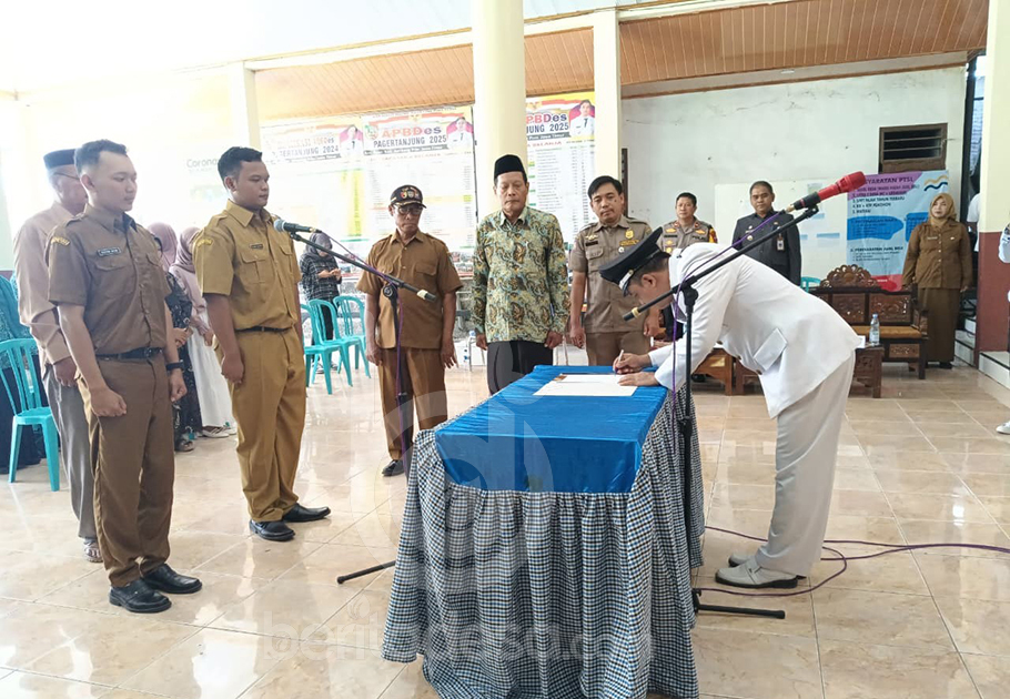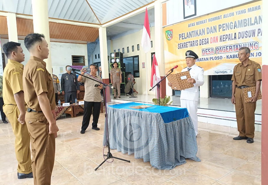 JOMBANG, beritadesa.com-Pemerintah Desa Pagertanjung, Kecamatan Ploso, Kabupaten Jombang, menggelar Pelantikan dan Pengambilan Sumpah Jabatan Sekretaris Desa dan Kepala Dusun Pagerongkal. Di pendopo balai desa setempat, pada Senin (29/12/2025) pagi.
