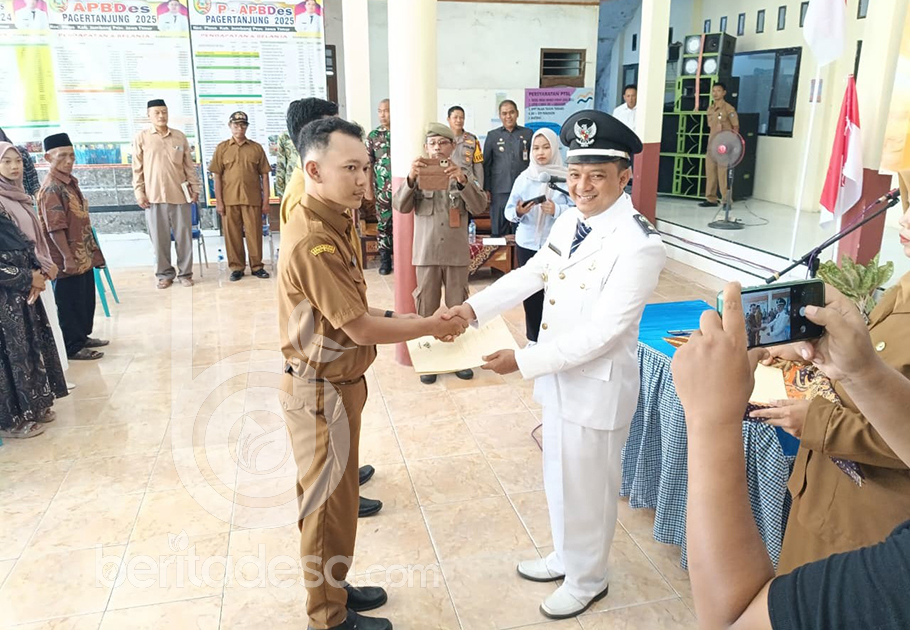 Pelantikan ini, berdasarkan Surat Keputusan (SK) Kepala Desa Pagertanjung Nomor 63 dan 64 Tahun 2025 tentang pengangkatan perangkat desa. Adapun dua perangkat yang dilantik, yakni : Vestyan Deygo sebagai Sekretaris Desa (Sekdes), dan M. Iqbal Saputra sebagai Kepala Dusun (Kasun) Pagerongkal