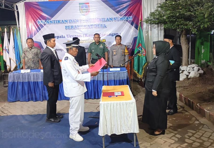 Pelantikan perangkat desa ini bertujuan untuk mengisi kekosongan jabatan Kaur keuangan, yang sebelumnya kosong. Juga bertujuan untuk meningkatkan pelayanan kepada masyarakat.