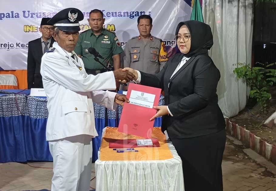 Pelantikan ini, sesuai Surat Keputusan (SK) Kepala Desa Pojokrejo Nomor 42 Tahun 2025 tentang pengangkatan perangkat, perangkat desa atas nama Ine Aladawiyah sebagai Kaur Keuangan Pemdes Pojokrejo, dengan masa jabatan sampai umur 60 tahun.