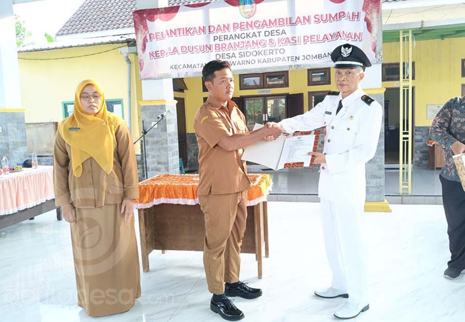 Pelantikan dipimpin langsung oleh Kepala Desa Sidokerto, Drs. H. Abdul Halim. Dua perangkat desa yang dilantik masing-masing adalah Agus Wijianto sebagai Kepala Dusun Branjang dan Mira Dzurrotun Nasikhah sebagai Kepala Seksi Pelayanan (Kasi Pelayanan)