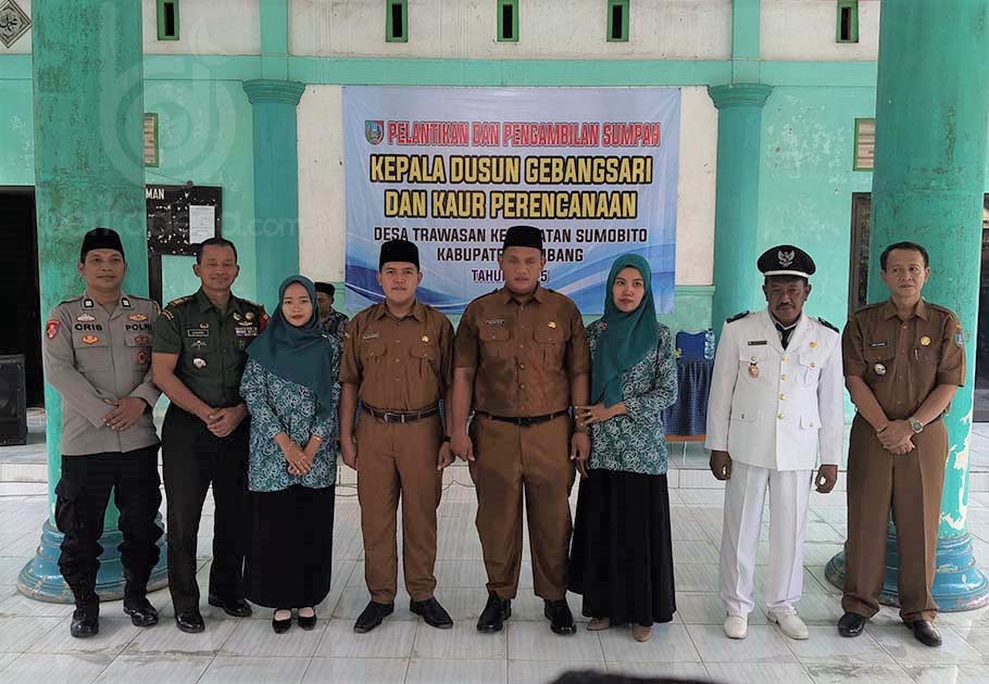 Sementara itu, Camat Sumobito, Heru Cahyono, memberikan ucapan selamat sekaligus pesan tanggung jawab kepada dua perangkat Desa Trawasan yang baru dilantik, yakni Kepala Dusun Gebangsari dan Kaur Perencanaan.