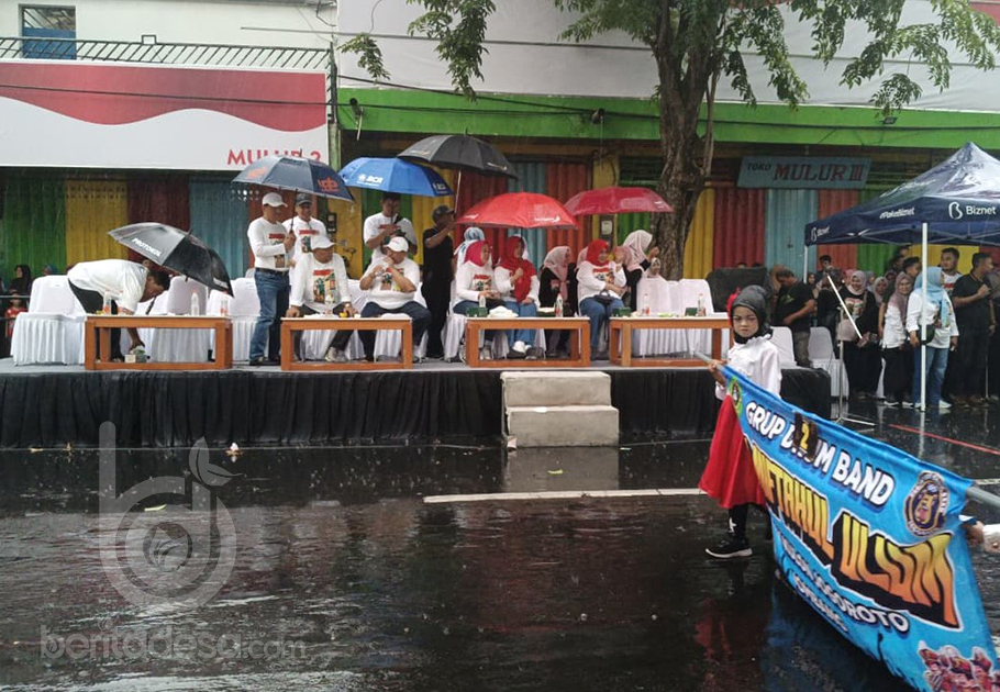 Pada kesempatan tersebut meskipun panas yang terik tiba tiba berubah menjadi mendung gelap dan diguyur hujan, semangat para peserta tidak surut hingga acara berakhir dengan lancar dan meriah.