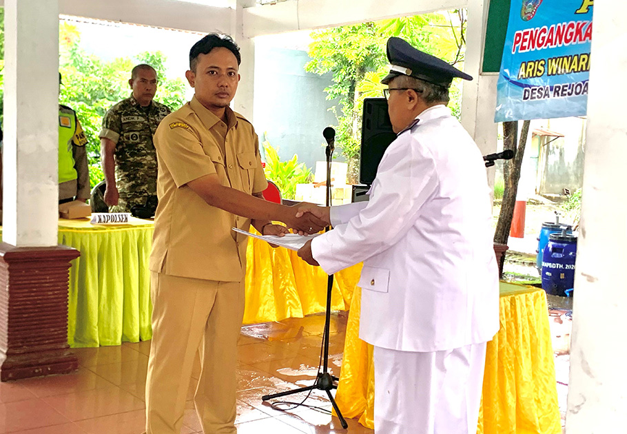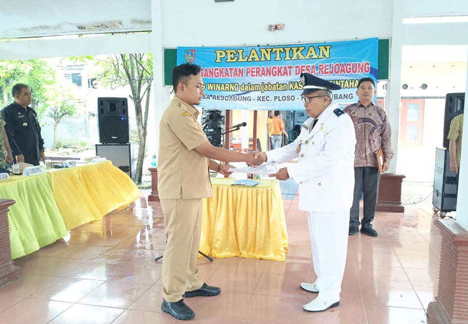 Adapun, perangkat desa yang dilantik yakni Aris Winarno sebagai Kepala Seksi (Kasi) Pemerintahan desa setempat. Pelantikan ini berdasarkan Surat Keputusan (SK) Kepala Desa Rejoagung Nomor 45 Tahun 2026 tentang Pengangkatan Perangkat Desa.