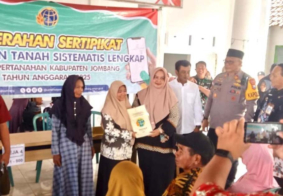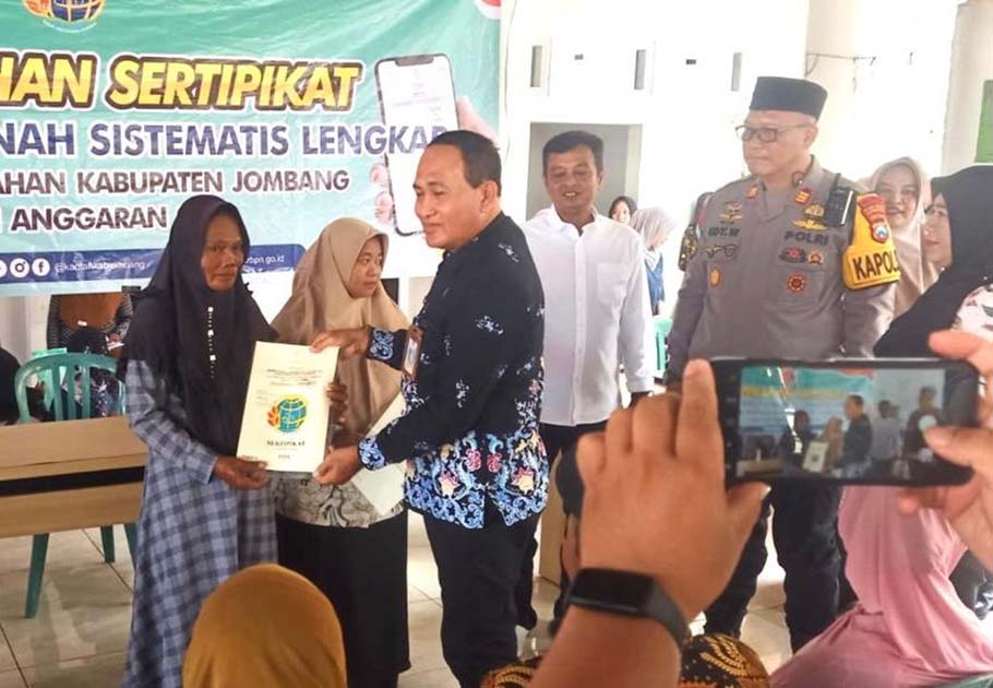 Acara dihadiri oleh Kepala Desa Banjardowo Samsudin Arief, Ketua Panitia PTSL Ervina, serta perwakilan Badan Pertanahan Nasional (BPN) Kabupaten Jombang, Eri Juliati, S.E., M.M, yang mewakili Kepala BPN Jombang Tomi Jomaliawan, A.Ptnh., M.H.