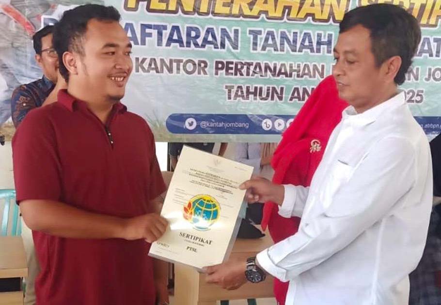 JOMBANG, beritadesa.com-Pemerintah Desa Banjardowo, Kecamatan Jombang, Kabupaten Jombang melaksanakan penyerahan Sertifikat Pendaftaran Tanah Sistematis Lengkap (PTSL) kepada warga pada Kamis (29/1/2026) di Balai Desa Setempat. Kegiatan ini diikuti ratusan warga penerima sertifikat dan berlangsung tertib.