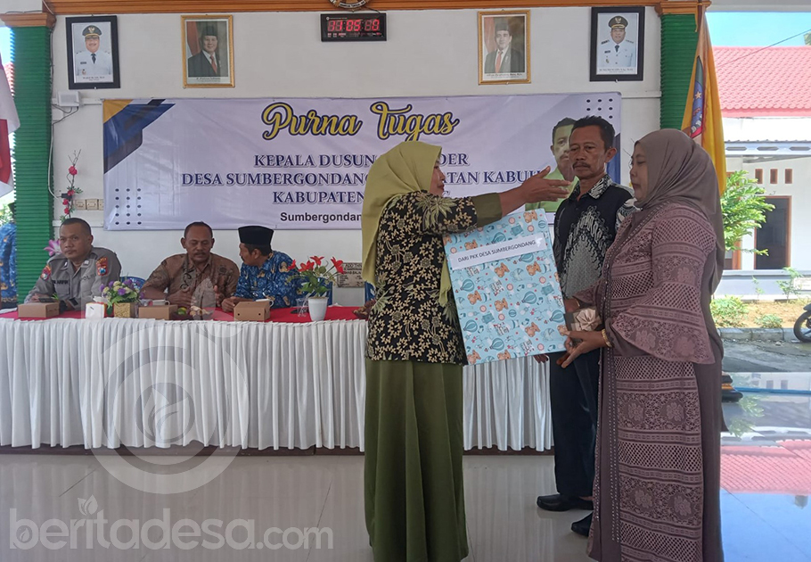 JOMBANG, beritadesa.com- Pemerintah Desa Sumbergondang, Kecamatan Kabuh, Kabupaten Jombang menggelar kegiatan pelepasan purna tugas perangkat desa, yakni kepala Dusun (Kasun) Bedander, bernama Talip.