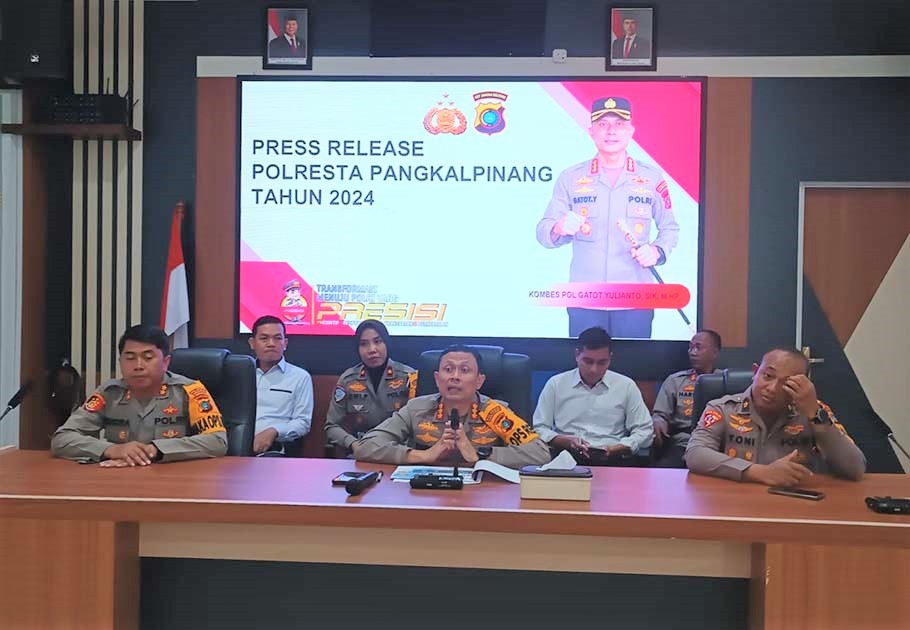 Kapolresta Pangkalpinang, Kombes Pol Gatot Yulianto mengatakan, kasus kriminalitas di Pangkalpinang sepanjang 2024 mencapai 698 kasus. Angka tersebut, katanya, naik dibandingkan dengan tahun sebelumnya.