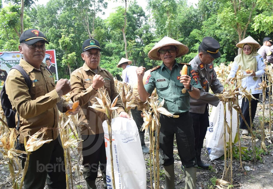 Kapolres Nganjuk, diwakili Wakapolres Nganjuk, Kompol Subiyantana, S.H., dalam kegiatan menyampaikan terimakasih dan apresiasinya atas sinergi semua pihak berjalannya panen jagung tahap pertama.