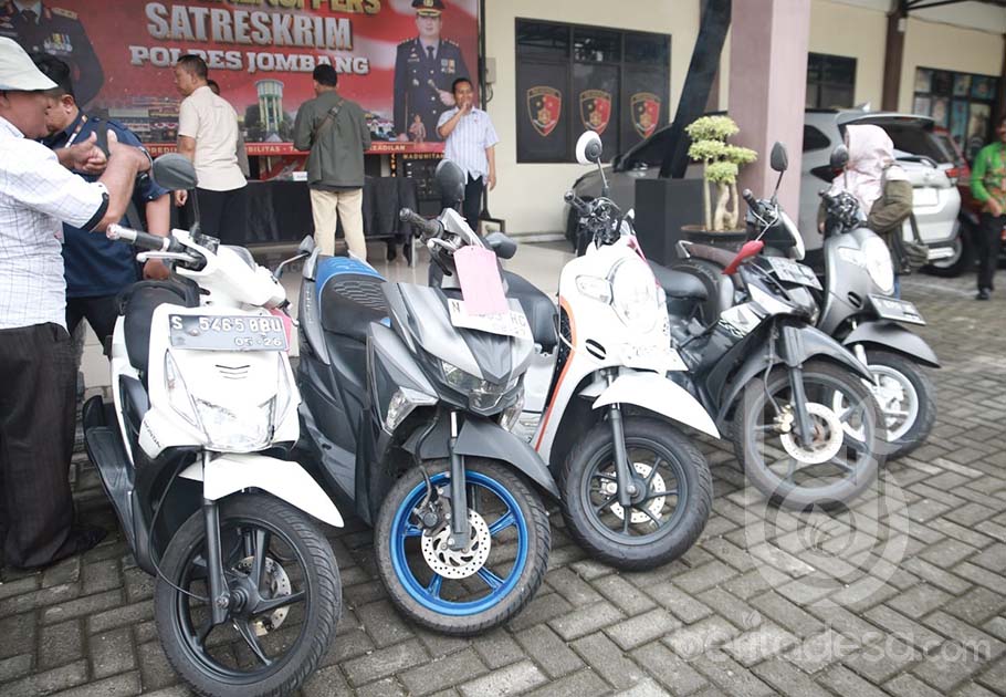JOMBANG, NusantaraPosOnline.Com-Kepolisian Resort Jombang menangkap 5 orang tersangka pelaku tindak pidana pencurian kendaraan bermotor (curanmor) dan mengamankan 5 unit sepeda motor.