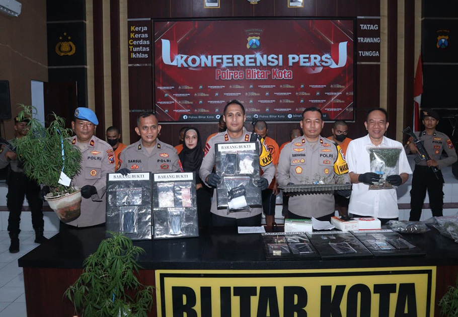 Kapolres Blitar Kota, AKBP Titus Yudho Uly dalam konferensi, pers Rabu (10/09/2025) mengatakan dari hasil operasi itu, Polisi berhasil amankan barang bukti sebanyak 2,46 gram sabu-sabu, 0,75 gram ganja kering,1.403 pil dobel L dan 820 tanaman ganja yang ditanam.