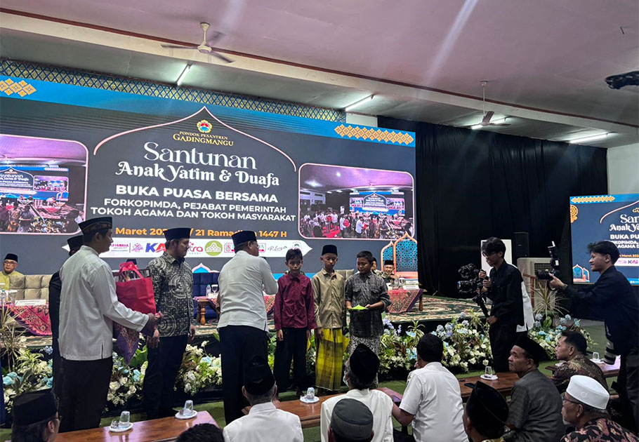 JOMBANG, beritadesa.com-Pondok Pesantren (Ponpes) Gadingmangu Kecamatan Perak Kabupaten Jombang, Jawa timur menggelar acara satunan anak yatim dan Duafa, serta kegiatan Buka Puasa Bersama (Bukber). Di pendopo Aula Pondok Pesantren Gadingmangu, pada Rabu (21/3/2026) petang.