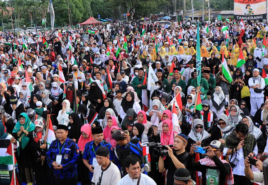 “Isu yang kami angkat hari ini adalah ‘hentikan genosida, kirim tentara ke Bumi Al-Aqsa, selamatkan Palestina’. Genosida tidak cukup direspons dengan bantuan kemanusiaan, tapi harus secara nyata mengirim tentara,” kata Gustar.