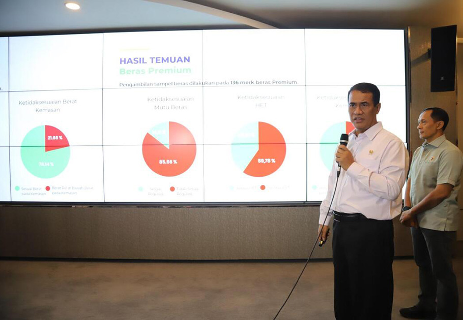 “Temuan ini hasil kerja lapangan yang kami lakukan bersama Satgas Pangan, Kejaksaan, Badan Pangan Nasional, dan unsur pengawasan lainnya. Dari 13 laboratorium di 10 provinsi, kami temukan 85,56 persen beras premium tidak sesuai mutu, 59,78 persen dijual di atas HET, dan 21 persen beratnya tidak sesuai. Ini sangat merugikan masyarakat,” tegas Mentan Amran dalam siaran pers yang diterima pada Jumat (27/6/2025).