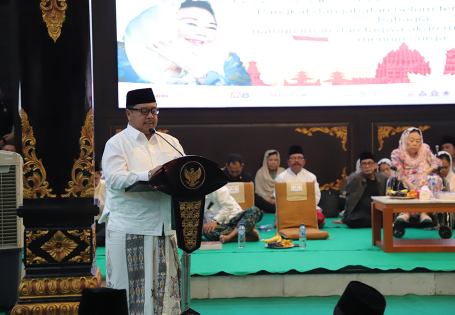 “Terlebih dahulu, saya ingin menyampaikan rasa hormat dan terima kasih kepada beliau, Ibu Nyai Shinta Nuriyah, yang di tengah kesibukannya masih terus berkeliling menyapa masyarakat dengan semangat kebangsaan, persaudaraan, dan keadilan,” kata Bupati Jombang.
