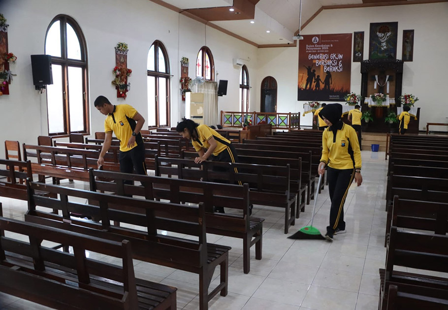 Dalam kegiatan tersebut, personel Polres Jombang dan Polsek jajaran bergotong royong membersihkan tempat ibadah dan lingkungan sekitarnya. Kepolisian juga memberikan bantuan sosial berupa alat-alat kebersihan kepada pengurus tempat ibadah sebagai bentuk dukungan nyata terhadap kebersihan dan kenyamanan lingkungan ibadah.