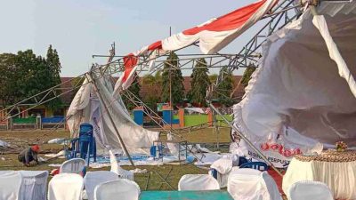 JOMBANG, NusantaraPosOnline.Com-Sejumlah tenda dan stand yang digunakan untuk kegiatan BULAGA (Bupati dan Wakil Bupati Melayani…