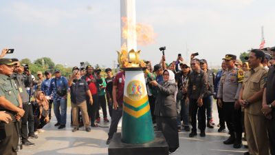 JOMBANG, beritadesa.com-Perjalanan Kirab Api Porprov Jawa Timur ke VIII dari Mojokerto menuju Jombang. Api Porporv…