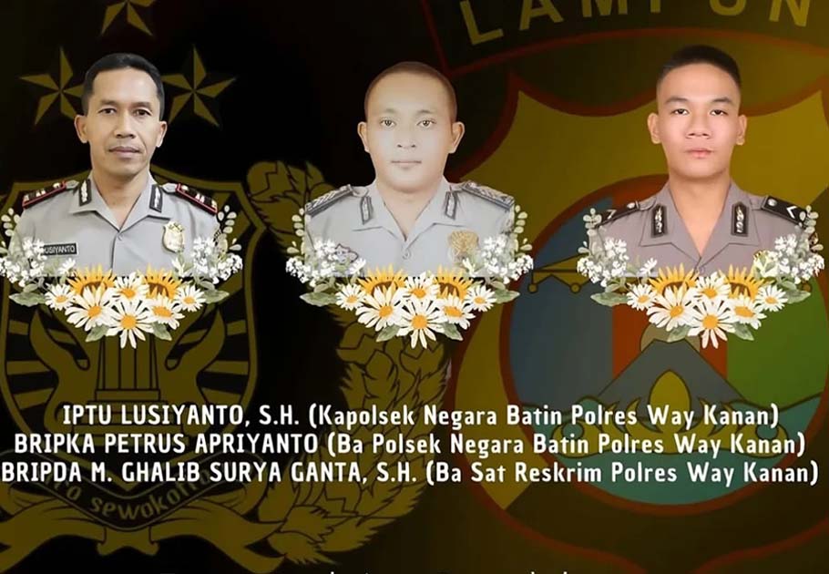 “Ketiganya jenazah sudah dievakuasi, saat ini akan dibawa ke RS Bhayangkara Polda Lampung untuk diautopsi. Dan saat ini Bapak Kapolda Lampung Irjen Helmy Santika menuju TKP, kini kita fokus mengamankan anggota yang lain,” terangnya. (*)